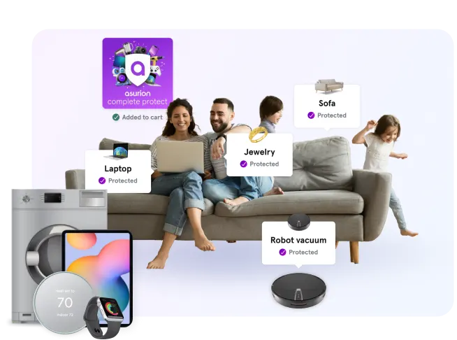 Asurion Complete Protect covers your eligible past (up to 1 year) and future purchases from breakdowns, power surges, wear and tear, plus more.